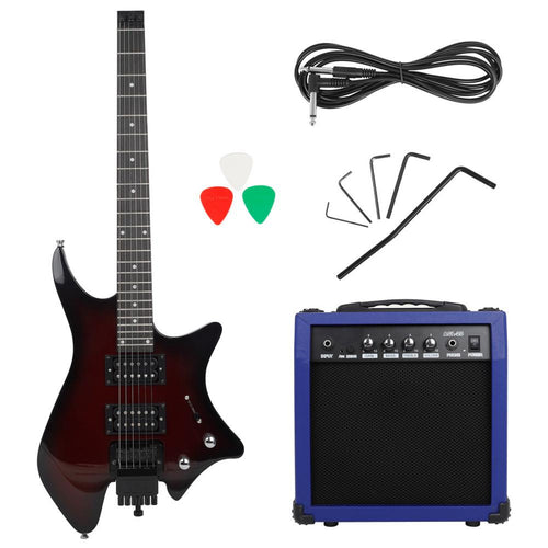 Headless Electric Guitar Hawaiian Guitar Soprano Musical Instruments with Double-row Pickup Speaker Audio Cable Handle Wrench