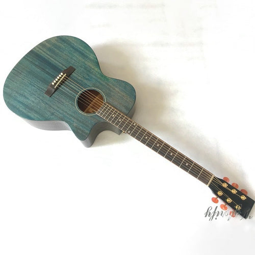 40 inch hand polish vintage blue color acoustic guitar high gloss finish cutaway design 6 string folk guitar